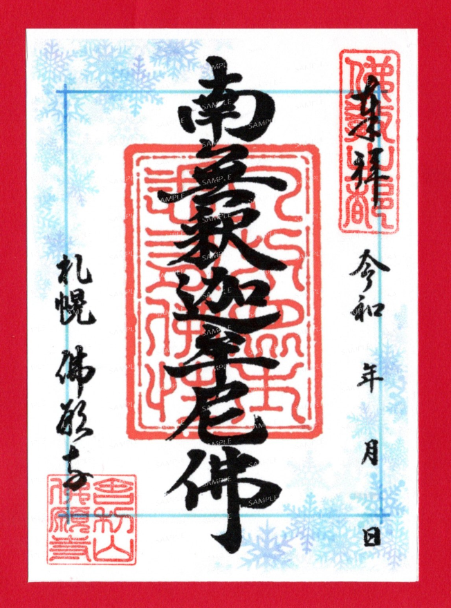 冬の御朱印「南無釈迦牟尼佛(なもしゃかむにぶつ)」(1枚500円)